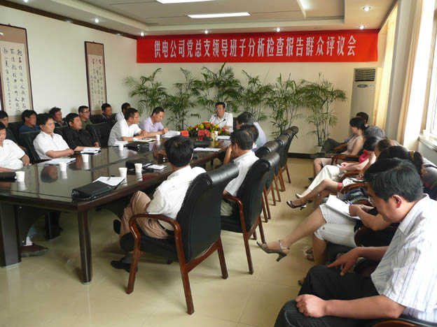 6月23日,我公司召開了黨總支領(lǐng)導(dǎo)班子分析檢查報告群眾評議會,機關(guān)中層管理人員、各供電所領(lǐng)導(dǎo)班子成員及部分職工代表參加了評議。