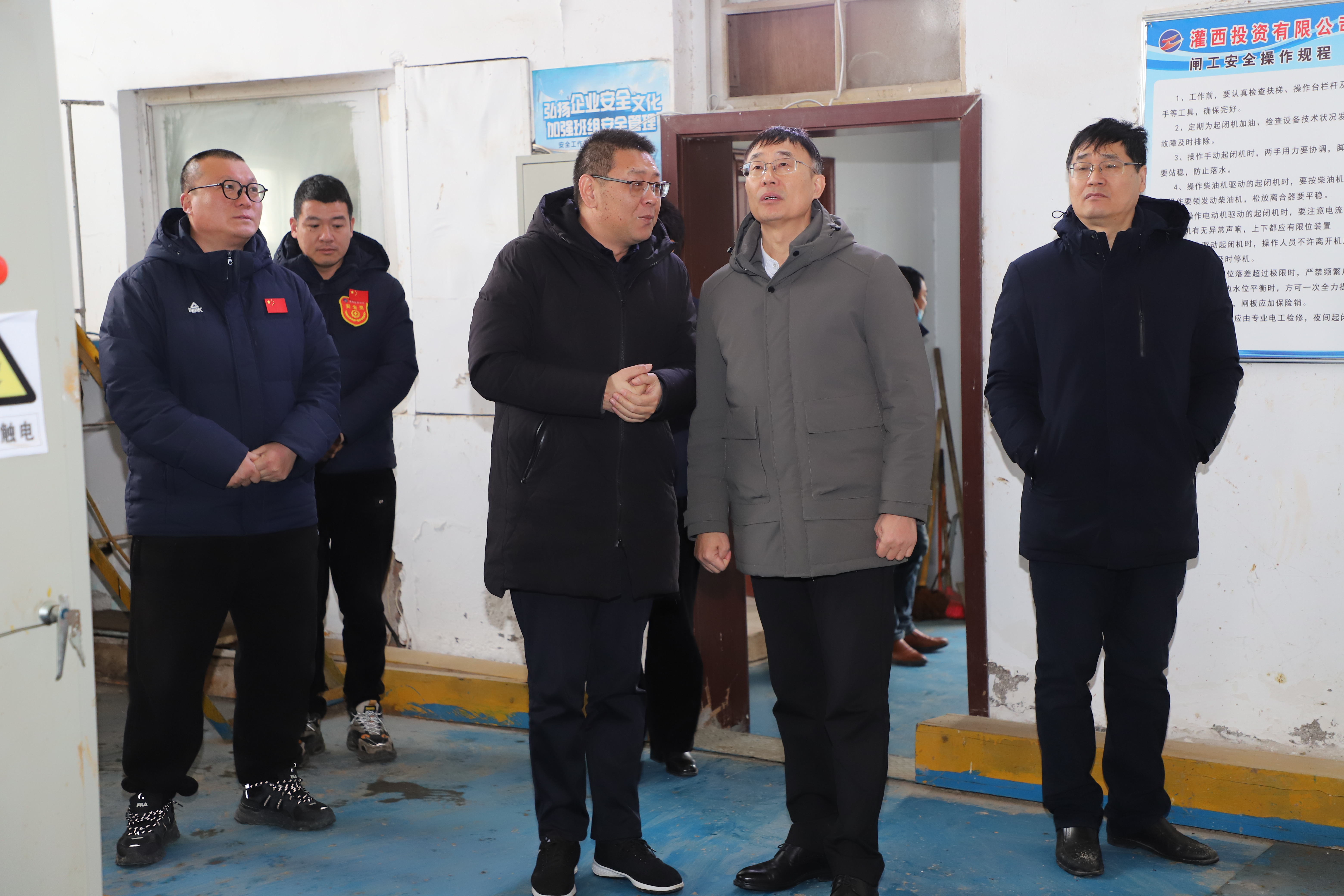 2月1日,集團(tuán)公司總經(jīng)理張六林一行來灌西投資公司督導(dǎo)春節(jié)前安全工作。公司黨委書記、董事長孫政權(quán)、常務(wù)副總經(jīng)理徐一林、黨委副書記、工會(huì)主席王宏陪同檢查。