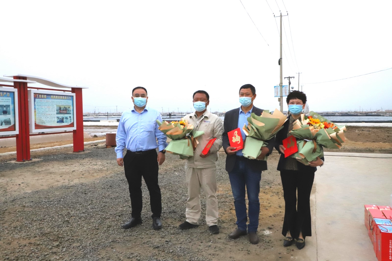 425日上午,楊龍董事長一行帶著鮮花和慰問,來到日曬制鹽新河制鹽分公司八班看望了灌西勞模代表王緒華、祝星星、王宏,與他們親切交談,聊家常、問冷暖,將黨的關(guān)懷、工會的問候送到他們手中、心中。與此同時,楊龍還慰問了八班全體員工,給他們送來餅干、八寶粥、飲用水等慰問品。