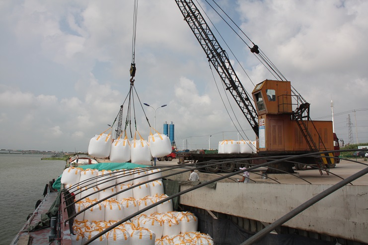 8月3日上午9點左右,當筆者來到宵洋物流公司五灌河碼頭時,這里已經到處是工人們忙碌的身影,吊機揮舞巨臂、車輛川流不息、現場管理者來回奔忙指揮、作業(yè)人員揮汗如雨緊張忙碌。