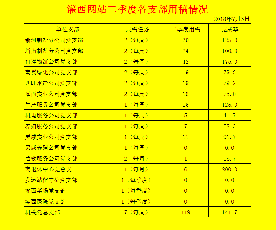 灌西網(wǎng)站二季度各支部用稿情況