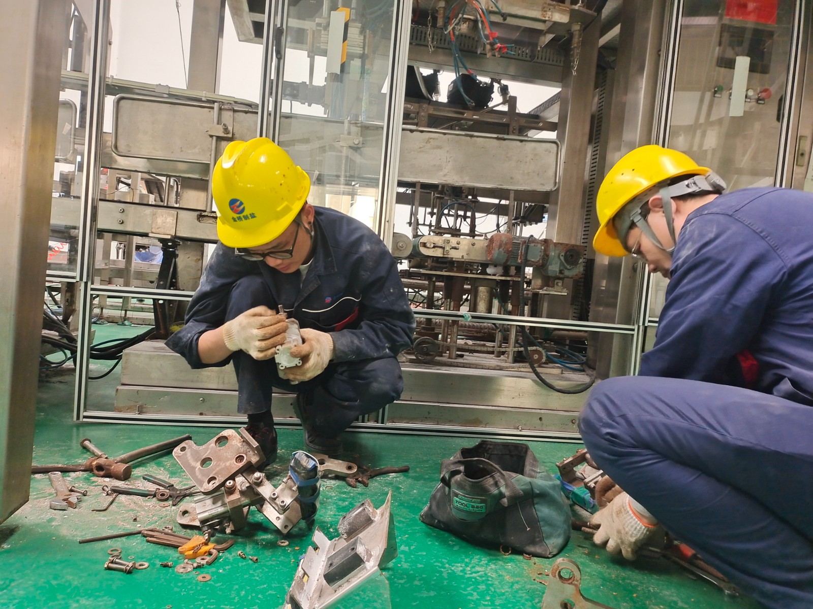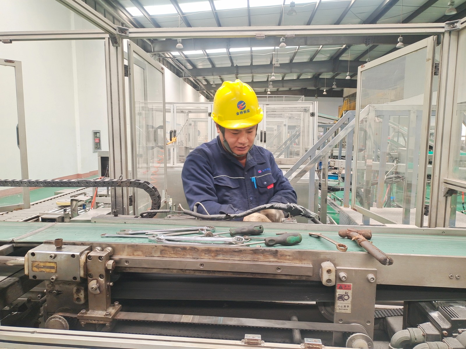 包裝鹽車間停產(chǎn)期間,為避免車間設(shè)備在后期生產(chǎn)時(shí)出現(xiàn)問題,王以知帶隊(duì)對設(shè)備進(jìn)行維修保養(yǎng)。經(jīng)過分工,陳韓和王睿對裝袋機(jī)夾袋機(jī)構(gòu)更換磨損軸承;趙新超對裝箱機(jī)伸縮頭導(dǎo)軌進(jìn)行調(diào)整維護(hù);王東海和秦榆旺對爬坡皮帶機(jī)檔條脫落的進(jìn)行加固;最后,對電纜溝蓋板除銹上漆,使車間環(huán)境更加美觀整潔。(李竹垚)