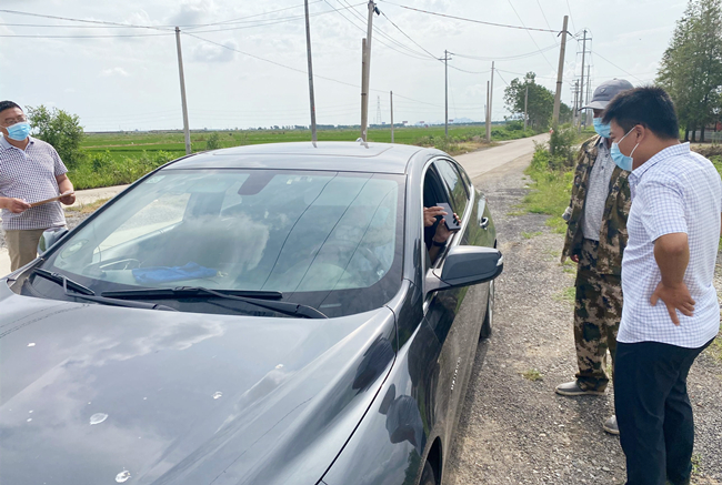 ? ? ? ?“請(qǐng)問(wèn)你們是從哪里來(lái)?請(qǐng)戴好口罩,出示行程碼、健康碼?!贝笮罗r(nóng)場(chǎng)黨支部黨員與部分職工一道,堅(jiān)決當(dāng)好疫情防控的“守門(mén)員”,在對(duì)外來(lái)車(chē)輛登記進(jìn)入人員信息,檢查健康碼、行程碼,開(kāi)展疫情防護(hù)知識(shí)宣傳。