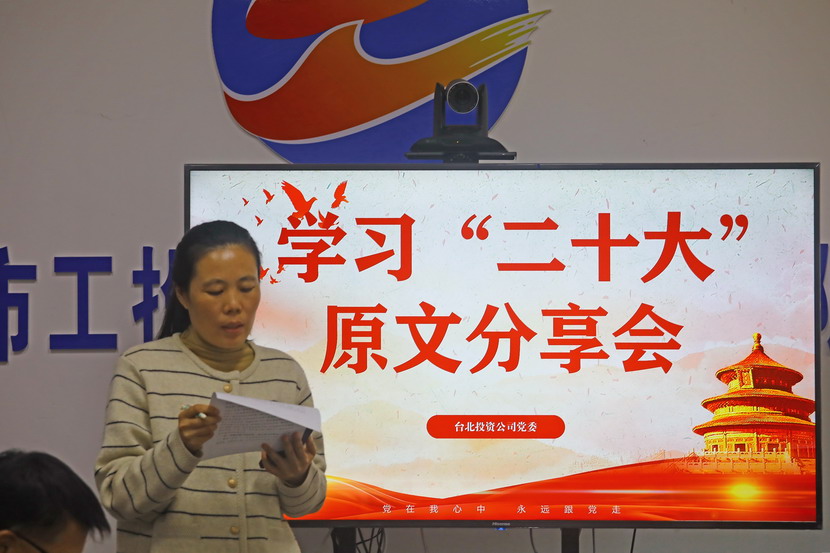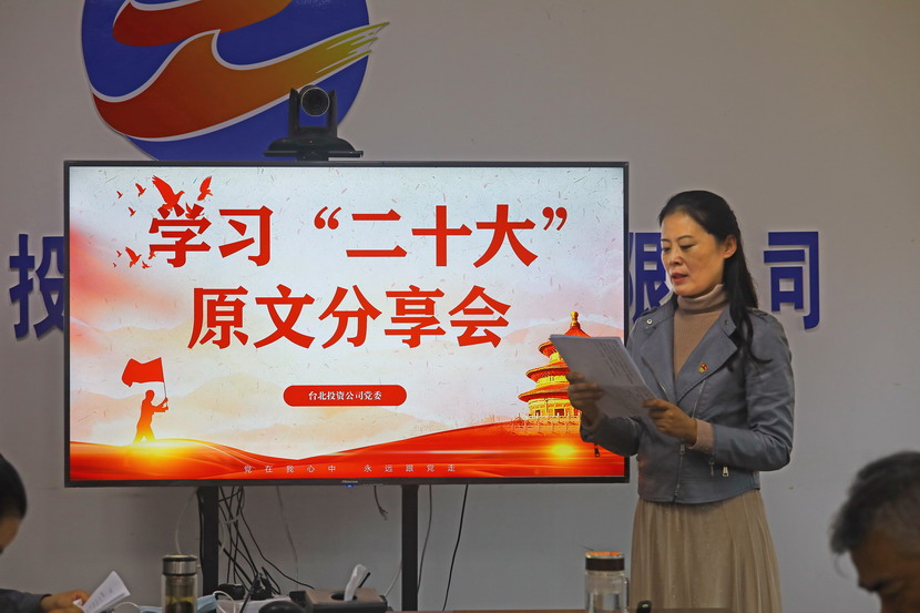 10月21日,臺北投資公司黨委組織召開黨的二十大報告學(xué)習(xí)交流會,每位同志閱讀報告原文,針對報告內(nèi)容結(jié)合工作實際,分享心得體會、暢談工作思路、謀劃未來發(fā)展。