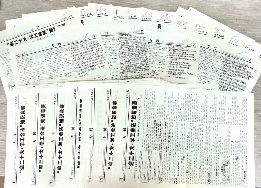 知識(shí)競(jìng)賽采取書面答題形式,共發(fā)放試卷40份,競(jìng)賽內(nèi)容主要來自2022年1月1日施行的《中華人民共和國工會(huì)法》(修正案)、產(chǎn)改工作相關(guān)知識(shí)等。經(jīng)集團(tuán)批閱,評(píng)選出一等獎(jiǎng)3名、二等獎(jiǎng)4名、三等獎(jiǎng)3名,并得到集團(tuán)發(fā)放的讀書卡進(jìn)行獎(jiǎng)勵(lì)。