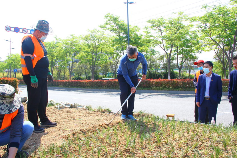 第二站來到黃海大道美多利公司支援片區(qū)。當(dāng)看到這一群年輕人“艱難”地工作,公司領(lǐng)導(dǎo)劉軍進(jìn)行了指導(dǎo):栽種要深,溝子要犁的深點(diǎn).....隨后董事長(zhǎng)王德志現(xiàn)場(chǎng)示范,并且強(qiáng)調(diào):苦干是精神,巧干是創(chuàng)新,巧干更能出活,大家放棄了休息,戰(zhàn)斗在崗位,你們就是最美的勞動(dòng)者,向你們致敬,希望大家弘揚(yáng)勞模精神、勞動(dòng)精神、工匠精神,繼續(xù)頑強(qiáng)拼搏、實(shí)干苦干,一起努力繼續(xù)建設(shè)美麗新臺(tái)北,當(dāng)好新時(shí)代的奮斗者、追夢(mèng)人。
