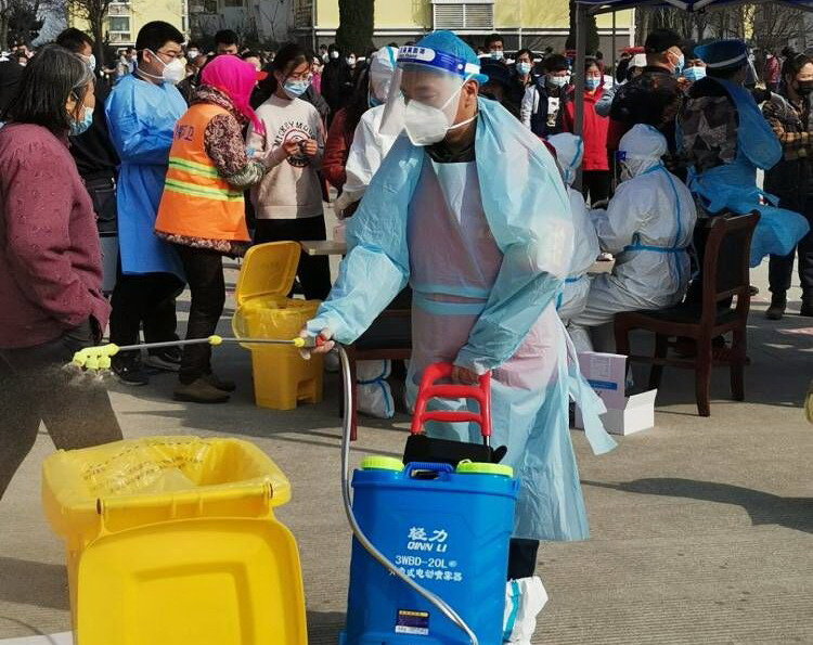 霍正鋼,志愿者隊伍的一員,也是這支志愿服務隊伍中的中堅力量。他,心中有大愛,在海州灣黨支部37日發(fā)出“馳援社區(qū),共同抗疫”動員令后,他第一個站出來:“疫情就是命令,防控就是責任。身為黨員,我理應模范帶頭,支持新冠肺炎疫情防控工作?!彼粌H是這樣說的,更是這樣做的,在昌圩社區(qū)每一次的核酸檢測中,他專挑“急、難、險、重”的活。比如消殺工作,這是一個體力活,需要背著足足有20公斤重的消毒液,來回不停的走動,不斷的添加消毒液。有幾次,核酸檢測從早上8點一直持續(xù)到晚上8點,足足12個小時,而消殺工作的時長都達到14個小時,不僅是檢測過程中,開始前和結(jié)束后的一小時都要消殺到位。14個小時下來,霍正鋼同志穿著密不透風的防護服,里面的衣服濕了又干,干了又濕······。當大家看到他口唇干裂的都掉了皮,問他:“你是沒有喝水嗎?”“不能喝水,忍著吧,喝水就得上側(cè)所,耽誤時間,這波病毒隱匿性強,傳播速度快,不能有一絲懈怠。”他憨厚的說著。