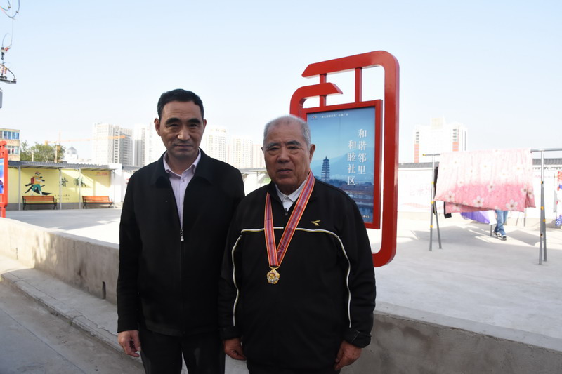 解韻波同志今年83歲,1956年1月參軍,那年19歲,同年6月經(jīng)過(guò)短期高強(qiáng)度培訓(xùn),作為無(wú)線電通訊兵出國(guó)抗美援朝。1959年西藏達(dá)賴集團(tuán)發(fā)動(dòng)叛亂,剛回國(guó)不久的解韻波作為無(wú)線電技術(shù)兵種隨即跟隨大部隊(duì)入藏平叛。至今他仍保留著抗美援朝軍功章,入藏平叛軍功章、紀(jì)念章等。1962年退伍分配至臺(tái)北鹽場(chǎng)工作,1997年退休。今天慰問(wèn)的時(shí)候,在鄰居們的簇?fù)砗推G羨之中,還沒(méi)進(jìn)家門,鄰居們就迫不及待地要求打開“紀(jì)念章”一睹風(fēng)采。紀(jì)念獎(jiǎng)?wù)聮煸诶蠎?zhàn)士胸前,一眾鄰里夸贊不斷:這份榮譽(yù)沉甸甸的。這份榮譽(yù)是拿命換來(lái)的。這是不得了的榮譽(yù)啊。這樣的老兵是我們的寶貝哦,我們要尊敬啊。……就在小區(qū)活動(dòng)廣場(chǎng)上,老戰(zhàn)士與大家暢談起保家衛(wèi)國(guó)光榮的戰(zhàn)斗經(jīng)歷,烽煙往事歷歷在目。退伍后,不褪軍人本色,幾十年如一日立足家鄉(xiāng)建設(shè),為臺(tái)北鹽場(chǎng)奉獻(xiàn)青春,為國(guó)家建設(shè)貢獻(xiàn)力量。大家對(duì)解韻波老戰(zhàn)士的革命戰(zhàn)斗和建設(shè)祖國(guó)的歷程表示由衷贊嘆和敬佩。