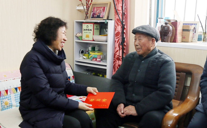 13日上午,省總工會(huì)黨組書記、副主席朱勁松在市人大副主任、市總工會(huì)主席王家全,市總工會(huì)黨組書記、副主席丁維杰陪同下,來我公司走訪慰問勞模王壽明同志,親手送上慰問金及慰問品,并為他帶來了新年的祝福。集團(tuán)公司董事長楊龍、工會(huì)主席劉承志陪同走訪。