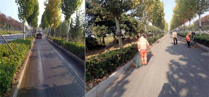 持續(xù)加大環(huán)衛(wèi)巡查力度。該分公司制定詳細(xì)預(yù)案,成立落葉期專項(xiàng)工作小組。采取人機(jī)結(jié)合方式,最大化保證清掃效果。加大機(jī)械化清掃力度,按照板橋工業(yè)園區(qū)道路環(huán)境,對落葉集中路段進(jìn)行重點(diǎn)清掃,巡回收集,確保隨落隨清。合理調(diào)整環(huán)衛(wèi)保潔人員,重點(diǎn)清掃機(jī)械清掃后的停車等障礙死角,適時(shí)延長人工保潔作業(yè)時(shí)間,加大落地枯死枝撿拾力度,為清掃車作業(yè)清除障礙。