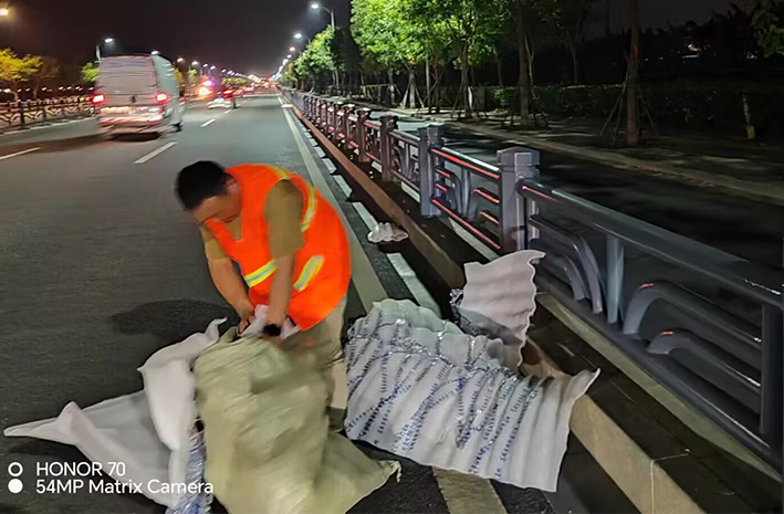 為及時(shí)有效排除道路突發(fā)障礙,保潔勇士無(wú)所畏懼,勇于擔(dān)當(dāng),第一時(shí)間趕赴道路車(chē)輛拋灑事發(fā)地段,用實(shí)干精神彰顯鹽場(chǎng)人愛(ài)崗敬業(yè)高尚風(fēng)采。