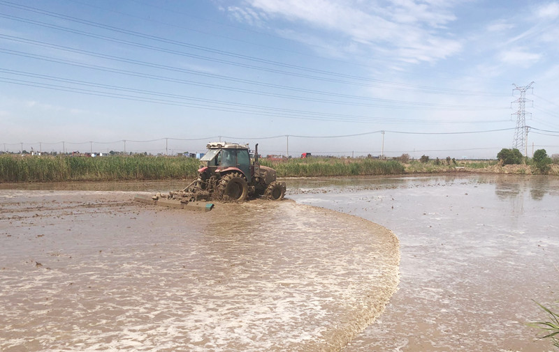 近日,倉儲中心搶抓農(nóng)時節(jié)點,積極推動50畝水稻地水找平作業(yè),為下一步插秧工作做好準備。(房江彬)