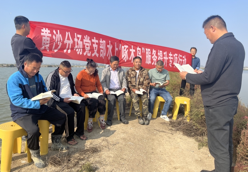 近日,黃沙分場(chǎng)黨支部開(kāi)展水上“啄木鳥(niǎo)”服務(wù)提升行動(dòng),組織養(yǎng)殖戶黨員和技術(shù)能手聚在塘頭學(xué)習(xí)黨的二十大報(bào)告,開(kāi)展養(yǎng)殖技術(shù)培訓(xùn)和生產(chǎn)服務(wù),切實(shí)打通黨建引領(lǐng)、服務(wù)養(yǎng)殖的“快速通道”。(盧伯斌)