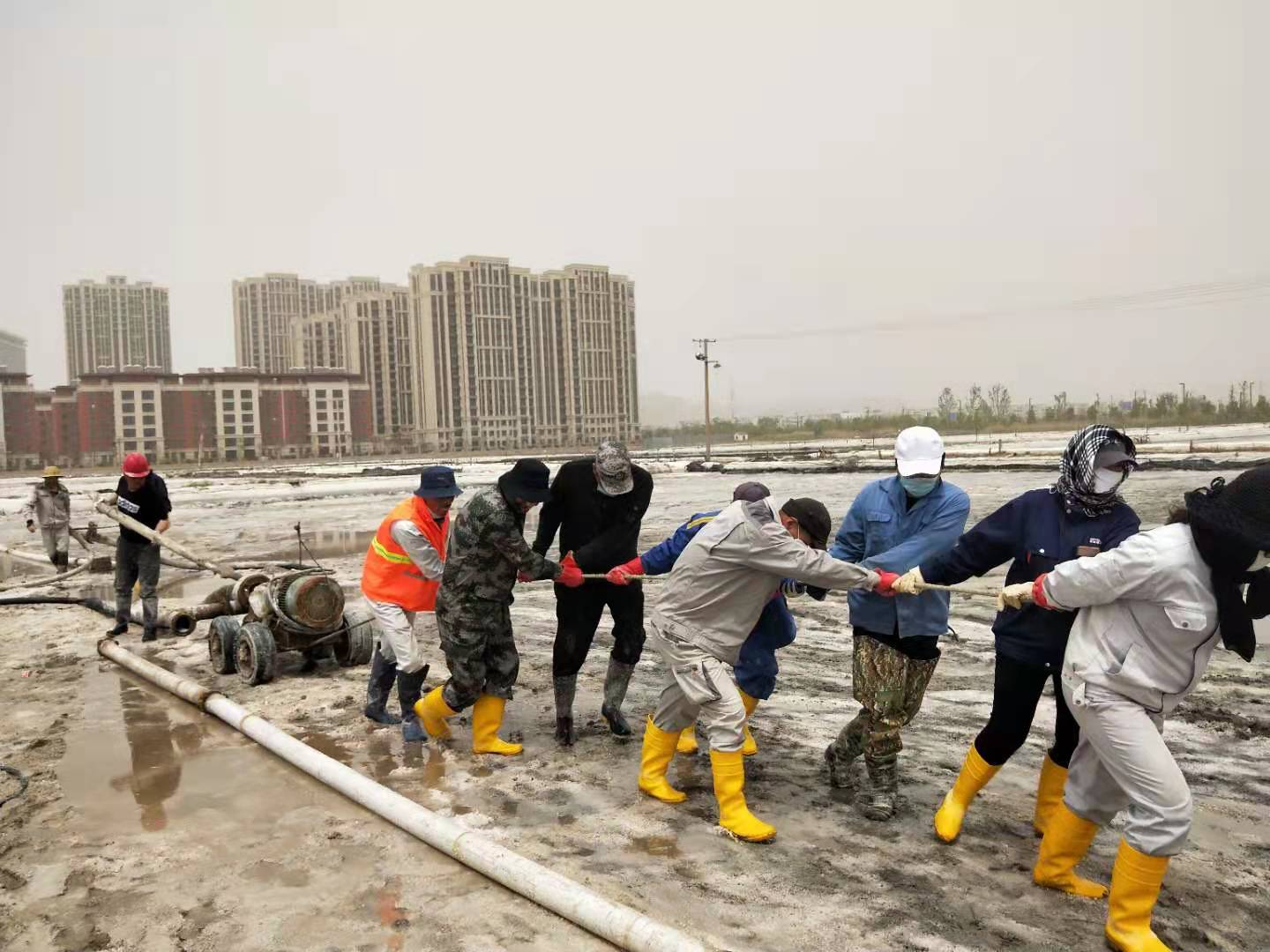 58日上午,海州灣公司在扒鹽現(xiàn)場,利用搶修扒鹽機械的間隙,組織當班職工迅速傳達了投資公司“大干紅五月,再創(chuàng)新佳績”動員大會會議精神,積極宣貫投資公司政策和鹽鈣產(chǎn)業(yè)當前面臨的嚴峻形勢,并制定公司大干紅五月小指標勞動競賽方案,開展職工勞動技能大比武,明確公司五月份經(jīng)濟指標,動員全員要團結(jié)奮進,樹立榮辱與共的集體榮譽感,進一步凝聚奮進力量,提升干群士氣,全力沖刺五月份扒鹽10000噸、排鹵60000方、實現(xiàn)營業(yè)收入260萬元的經(jīng)濟目標,掀起大干紅五月的熱潮,營造齊心協(xié)力、大干快干的良好局面。