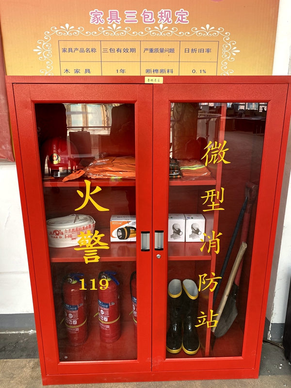 臨達公司微型消防站面積雖然不大,但可謂麻雀雖小,五臟俱全,滅火器、水槍、水帶、撬棍、消防戰(zhàn)斗服、防護面具等裝備,整齊擺列在微型消防站內(nèi);同時將依托微型消防站,進一步加強消防知識普及宣傳,鍛煉應(yīng)急救援隊伍處置能力,把微型消防站建設(shè)成“有人員、有器材、有戰(zhàn)斗力”的戰(zhàn)斗堡壘,發(fā)揮“小、快、靈”的重要工能作用,為臨達公司消防安全提供強有力的保障,為臨達公司商戶牢牢筑起一道安全的“防火墻”。